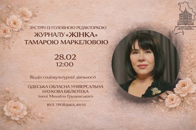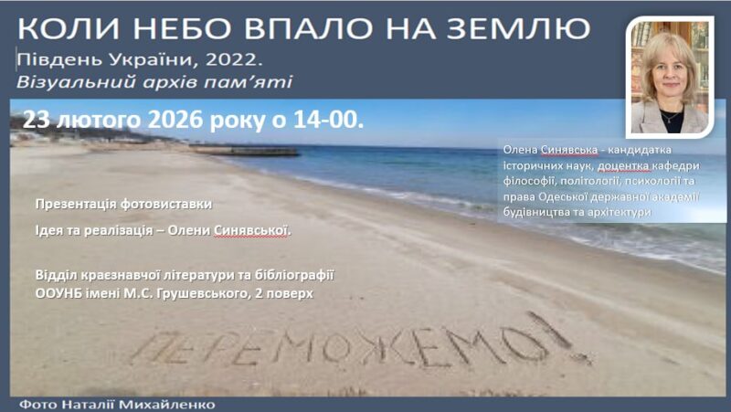 21 лютого 2026 року о 13:00 в Одеській ОУНБ імені М. С. Грушевського (відділ соціокультурної діяльності, 1-й поверх) відбудеться...