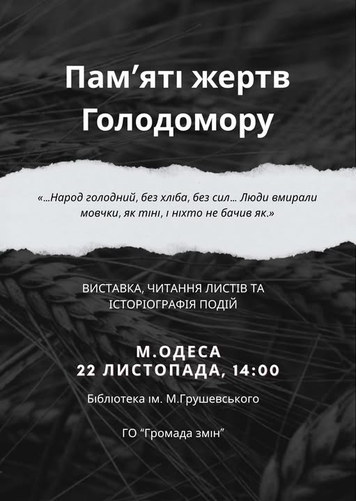 «Памяті жертв Голодомору»: виставка, читання листів та історіографія подій