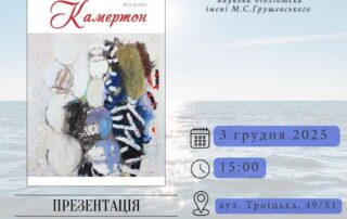 3 грудня 2025 року о 15:00 в Одеській ОУНБ імені М. С. Грушевського (відділ соціокультурної діяльності, 1-й поверх) відбудеться презентація [...]