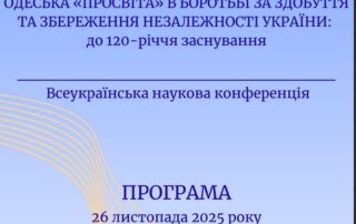 Всеукраїнська наукова конференція «Одеська «Просвіта» в боротьбі за здобуття та збереження Незалежності України: до 120-річчя заснування»: програма